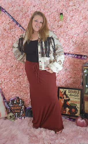 Rust Maxi Skirt With Drawstring Waist & Pockets
