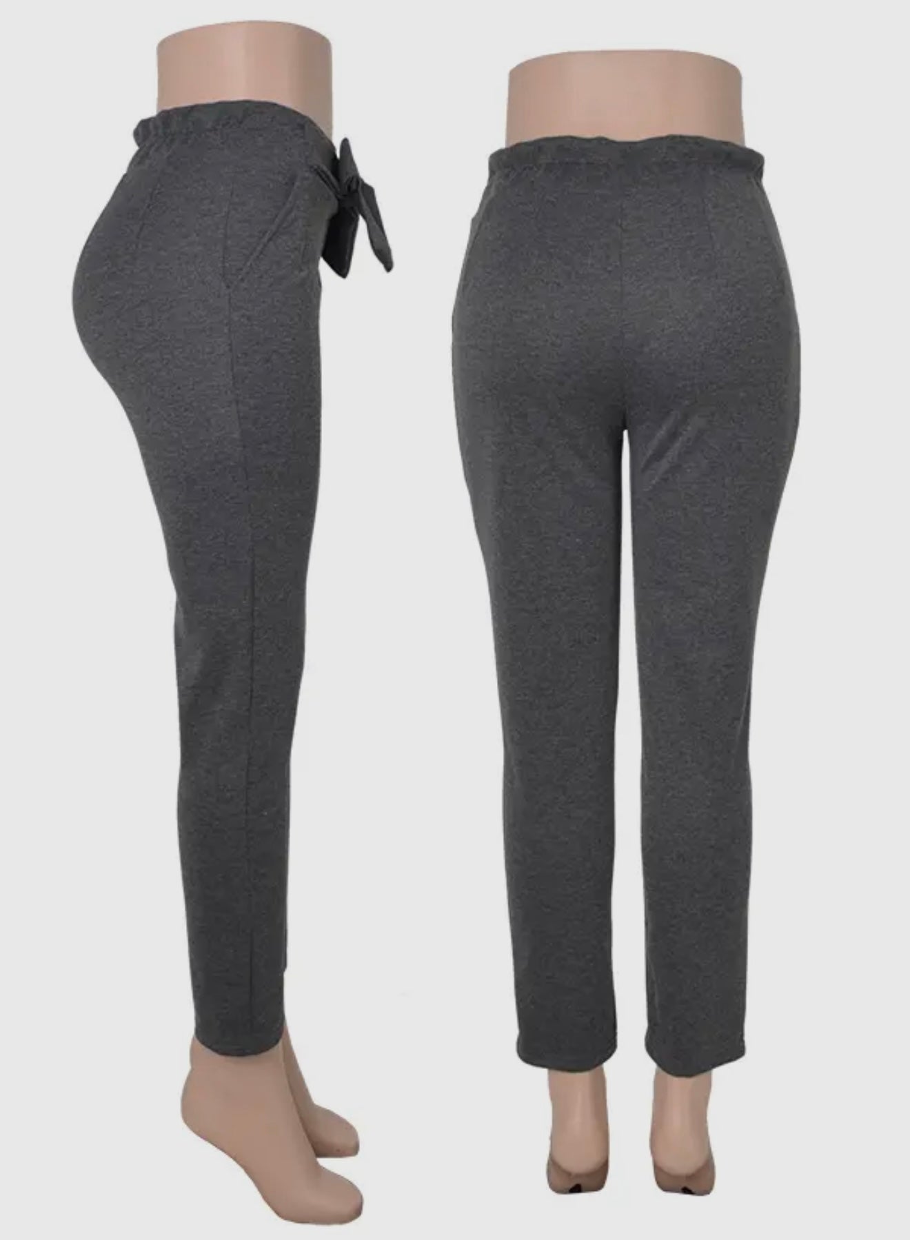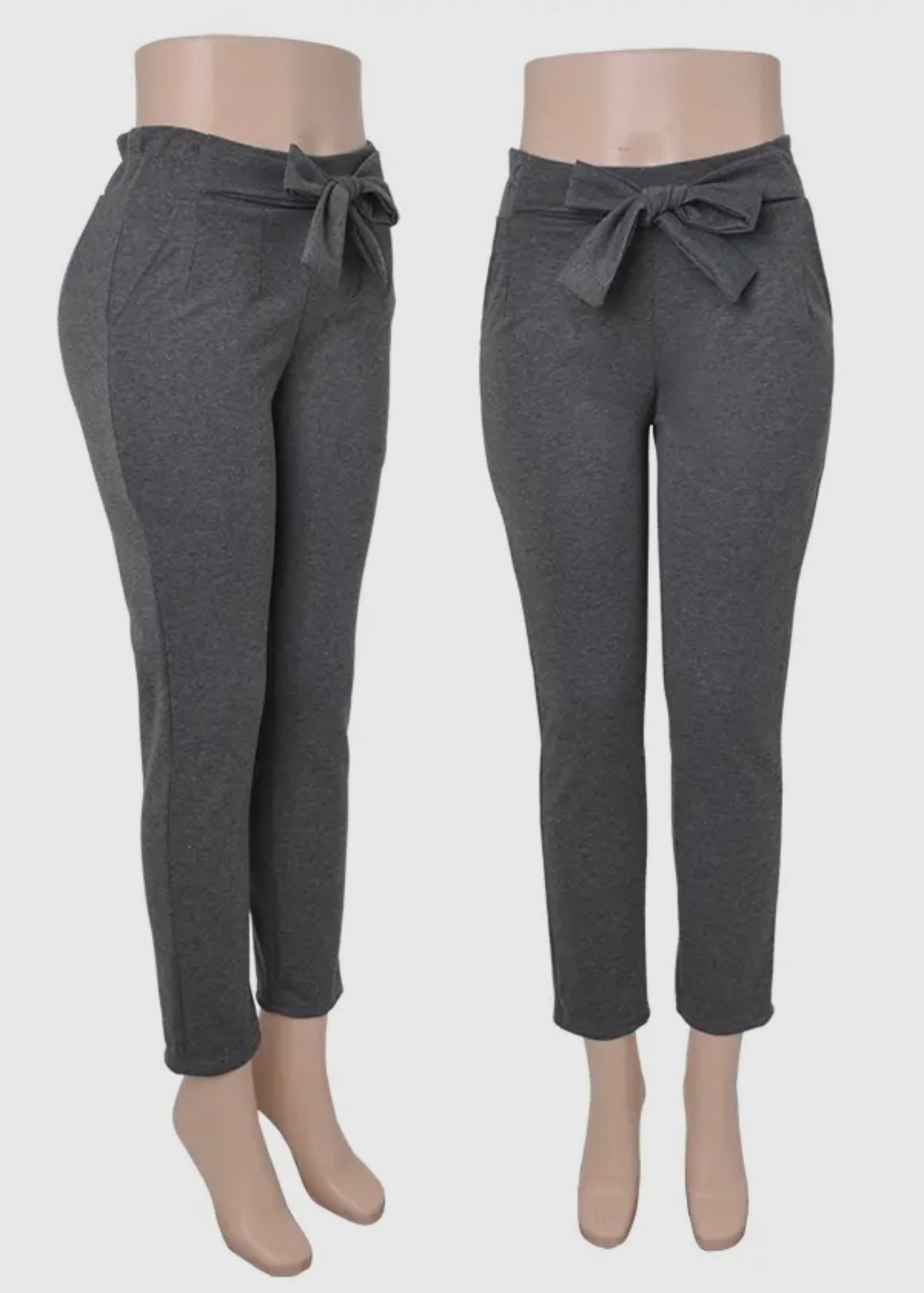 Paper Bag Waist Style Pants With Front Tie & Pockets.