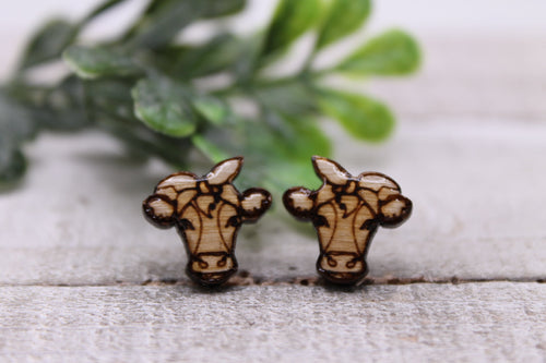 Cow with Headband || 12mm Glass Stud Earrings || Hypoallergenic