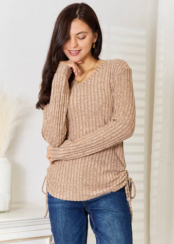 Ribbed Tan 🟤 Shirt With Tie Sides