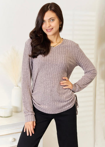 Grey ⚪️ Mauve Ribbed Shirt With Tie Sides