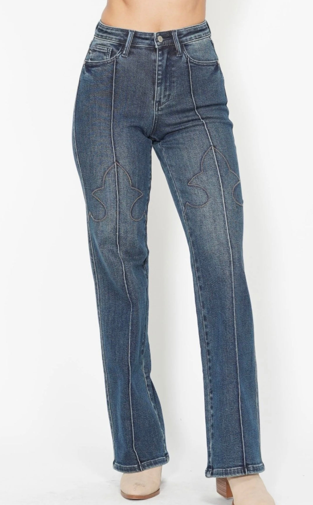 • Load image into Gallery viewer, Judy Blue Western Stitch Straight Leg Jeans