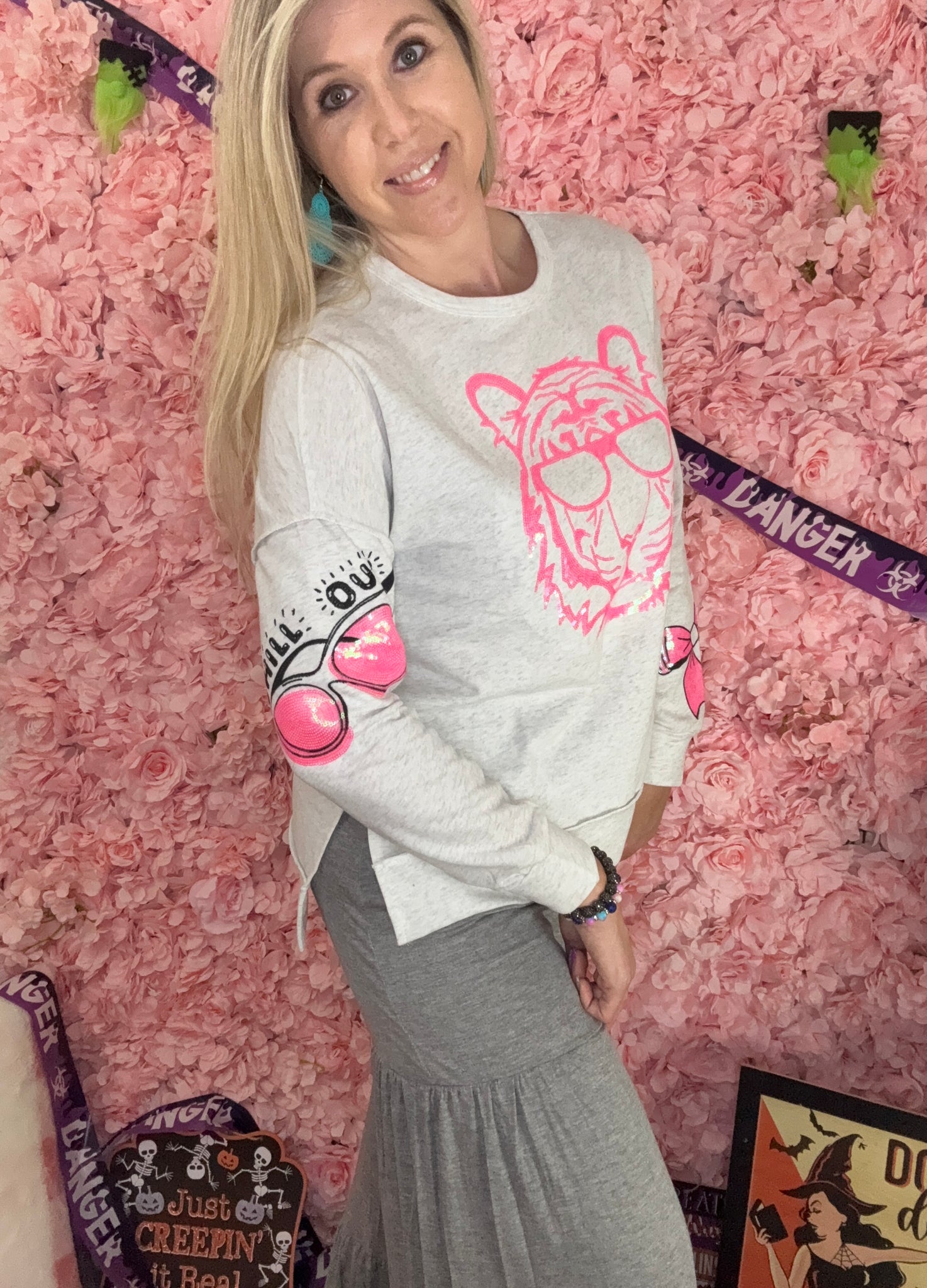Merigold Kiss Sequin Embroidery Sweatshirt in Grey.