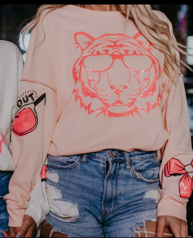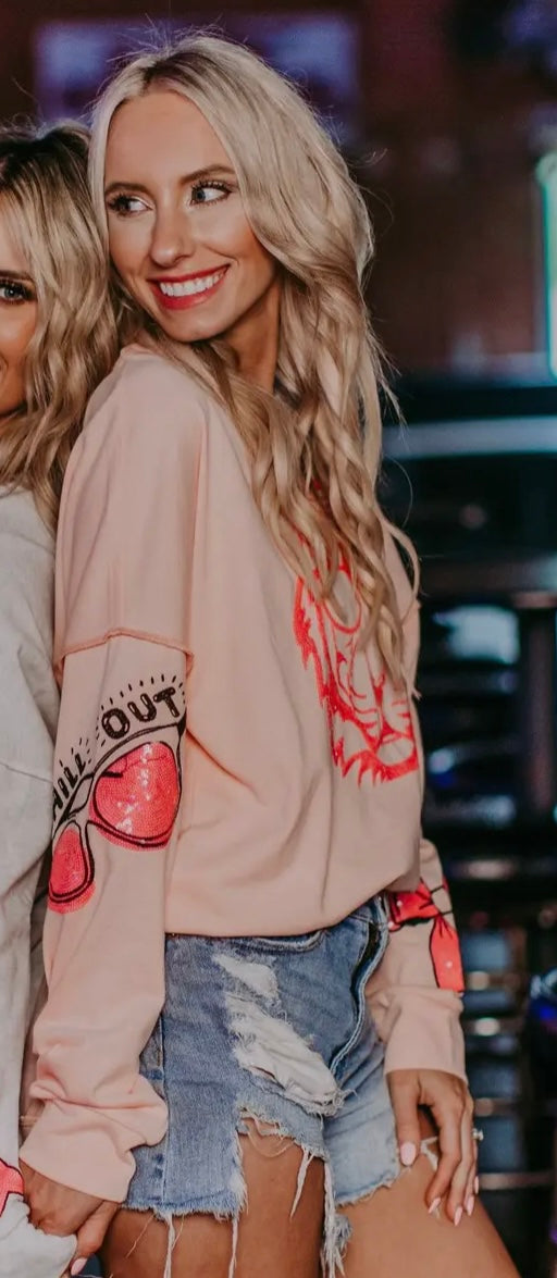 Merigold Kiss Sequin Embroidery Sweatshirt in Peach.