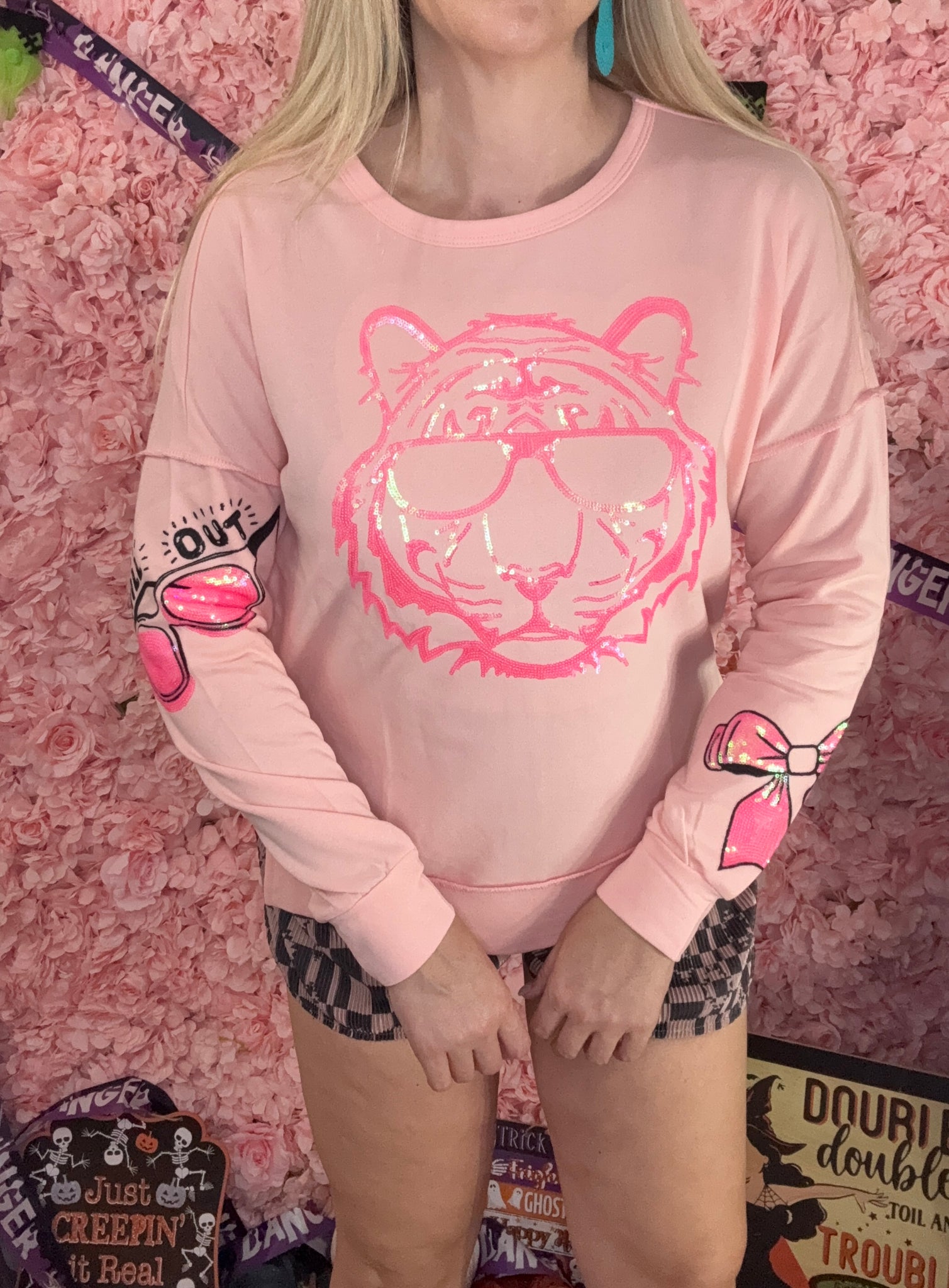 Merigold Kiss Sequin Embroidery Sweatshirt in Peach